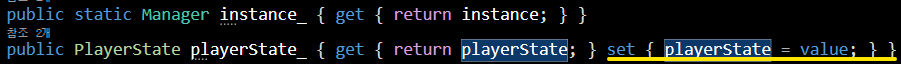 public PlayerState playerState_을 통하여 Get/Set프로퍼티를 이용해 접근을 하게 해 주었으며
