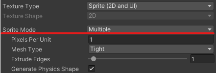 Sprite Mode는 Multiple로 바꿔 주었습니다.
