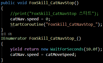 간단히 코 루틴으로 인해 speed = 0에서 원래 스피드 값으로 바꿔 주어