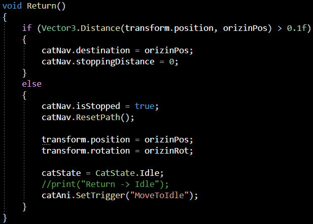 transform(CatEnemy)가 orizinPos로부터 의 거리가 FindPlayerRadius의 범위보다 크다면