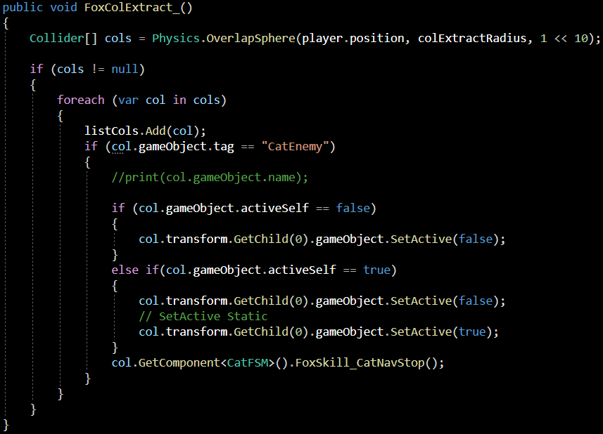 col.GetComponent <CatFSM>(). FoxSkill_CatNavStop()의