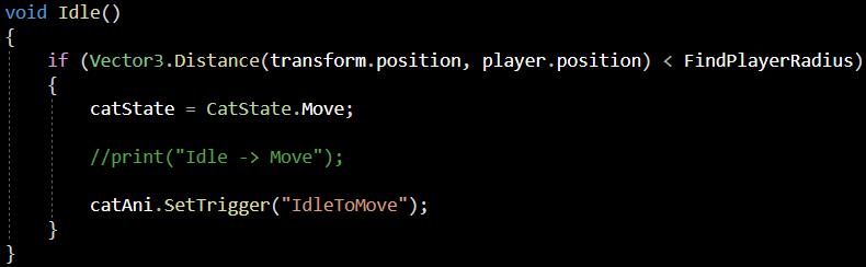 CatEnemy의 상태가 Idle 일 때 switch문에서 실행되는