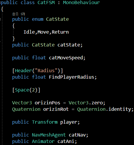 CatState의 열거형 상수로 인해 CatEnemy의 상태를 3가지로 선언해 주었습니다.