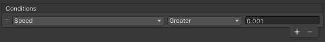 즉 스피드 값이 0.001보다 Greater(높다면) Idle애니메이션에서 Run 애니메이션으로 전환되며