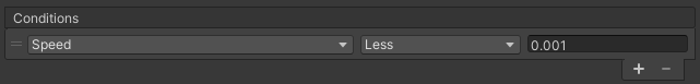 스피드 값이 0.001보다 Less(낮다면) Run애니메이션에서 Idle애니메이션으로 전환됩니다.