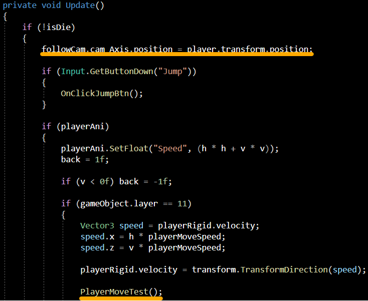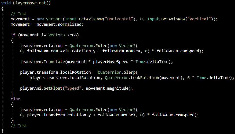 이번엔 PlayerMovement에 있는 Test용 PlayerMoveTest함수입니다.