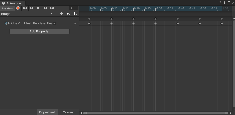 간단히 bridge오브젝트의 Mesh Rennderer를 Enabled를 이용해 껐다 켜주는 애니메이션입니다.