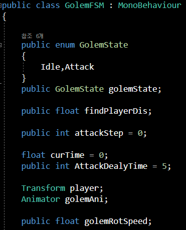 golemState : GolemState를 제어하기 위해 만든 변수입니다.