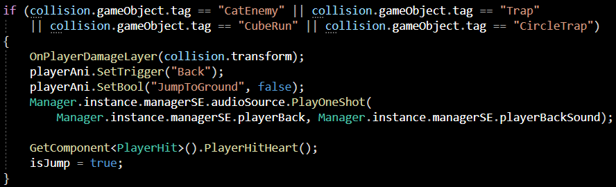 PlayerMovement의 OnCollisionEnter의 코드중 일부 이 코드는 몇 번 나왔기에 여기서는 생략하겠습니다.