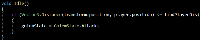 Distance로 거리를 측정하여 findPlayerDis 즉 골렘에서 플레이어의 거리가