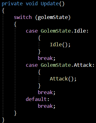 Update함수에서는 간단히 golemState(골렘의 상태)를 판단해