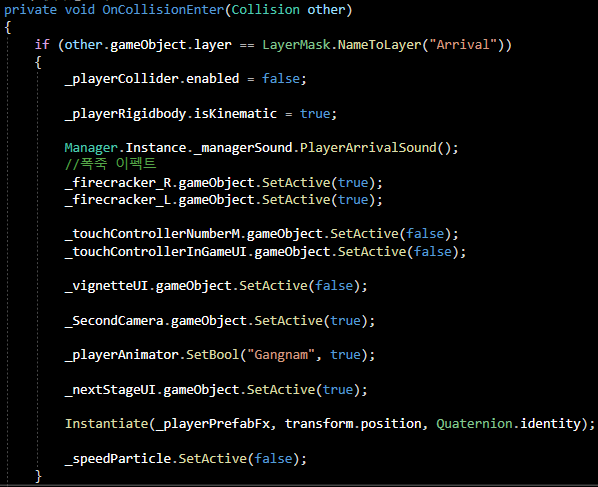 "Arrival"의 레이어를 가진 오브젝트가 충돌을 하면