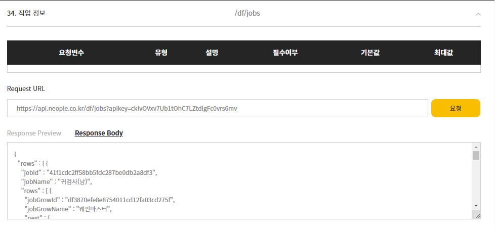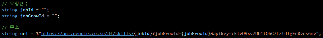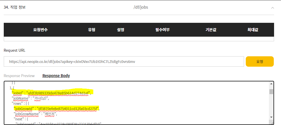 보시면 요청사항에 적혀 있는 jobId와 jobGrowId가 <> 안에 들어가 있는것을 볼 수 있는데