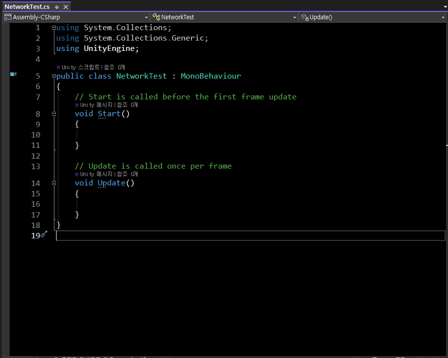 우선 스크립트를 Network라는 이름을 지어 만들어 주었습니다.