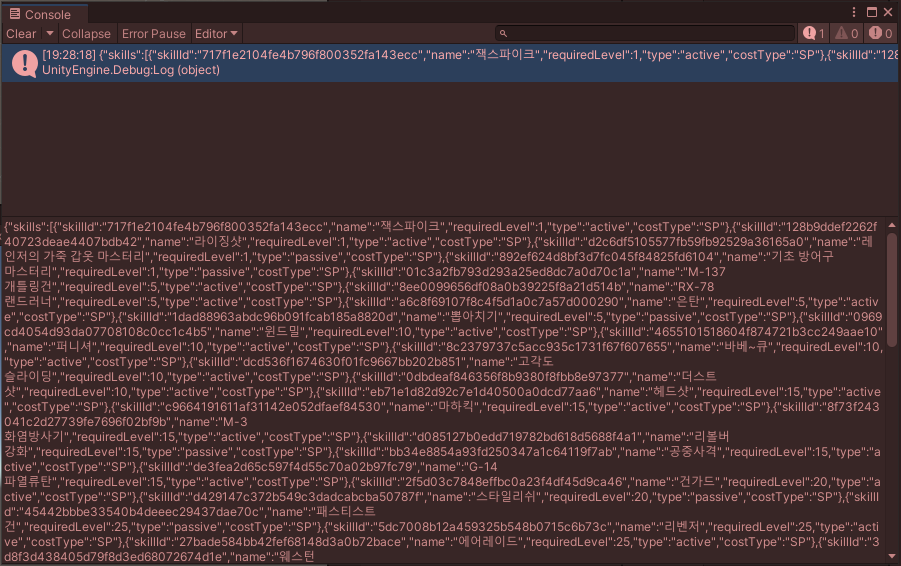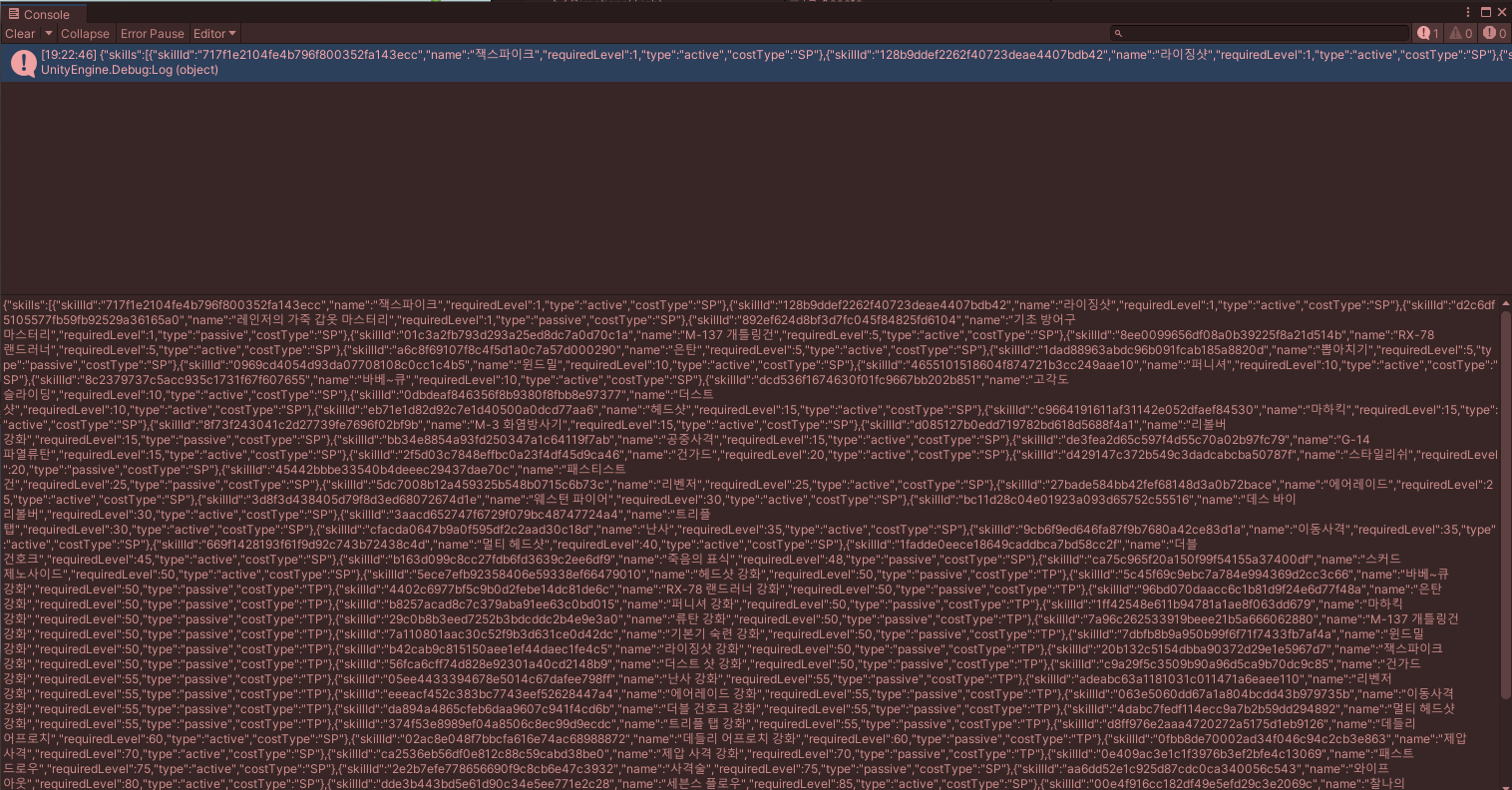 이 후 실행을 해보면, 무수히 많은(?) 스킬 리스트 들을 볼 수 게 되었습니다.