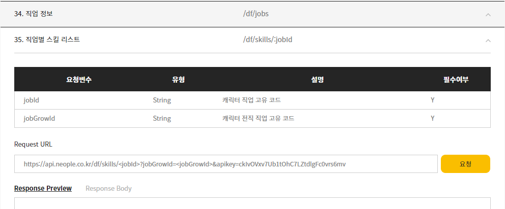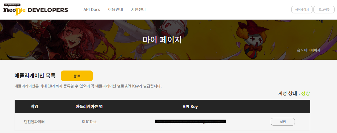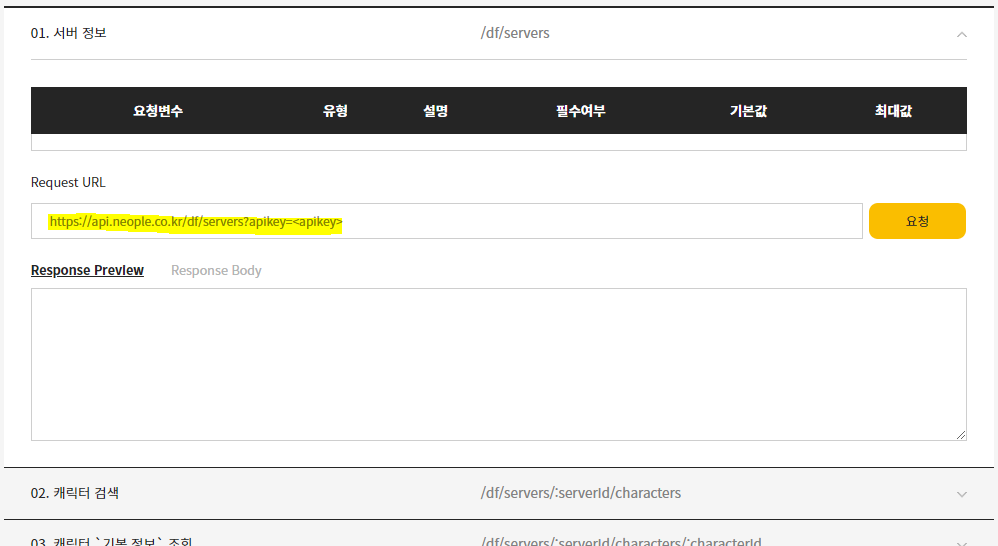 던전앤 파이터 api를 사용 할 수 있었습니다.