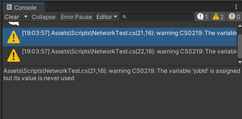 유니티 엔진 자체에서 경고 표시를 나타내는것을 볼 수 있었습니다.