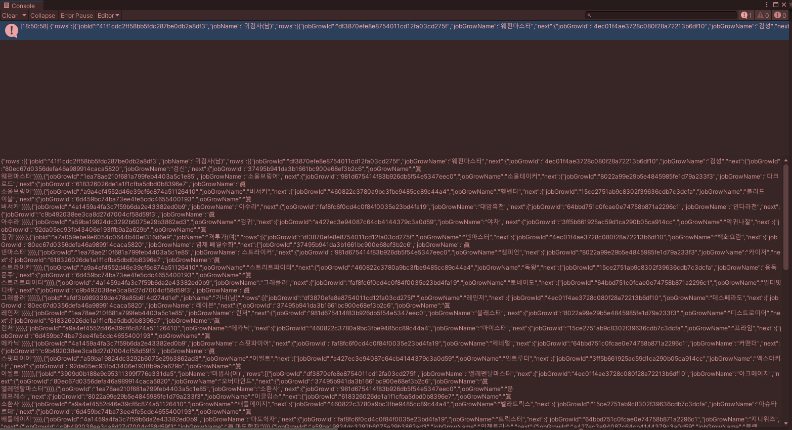 거너의 jobId와 레인저의 jobGrowld를 변수에 넣어 주었습니다.