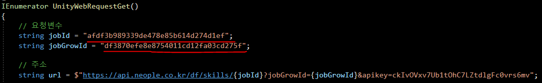 UnityWebRequest 방식의 get을 이용하여 가져와 주는 모습이며